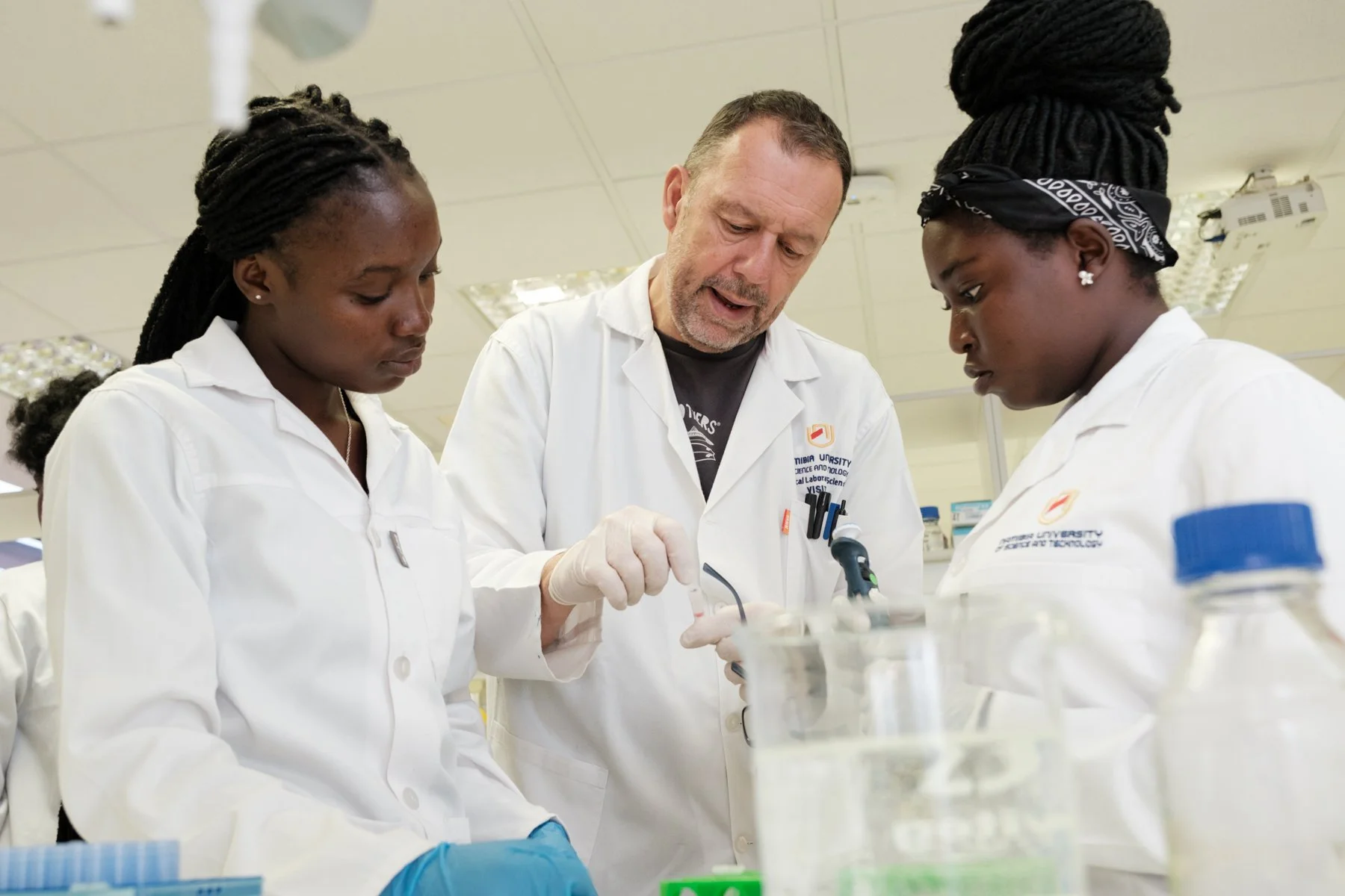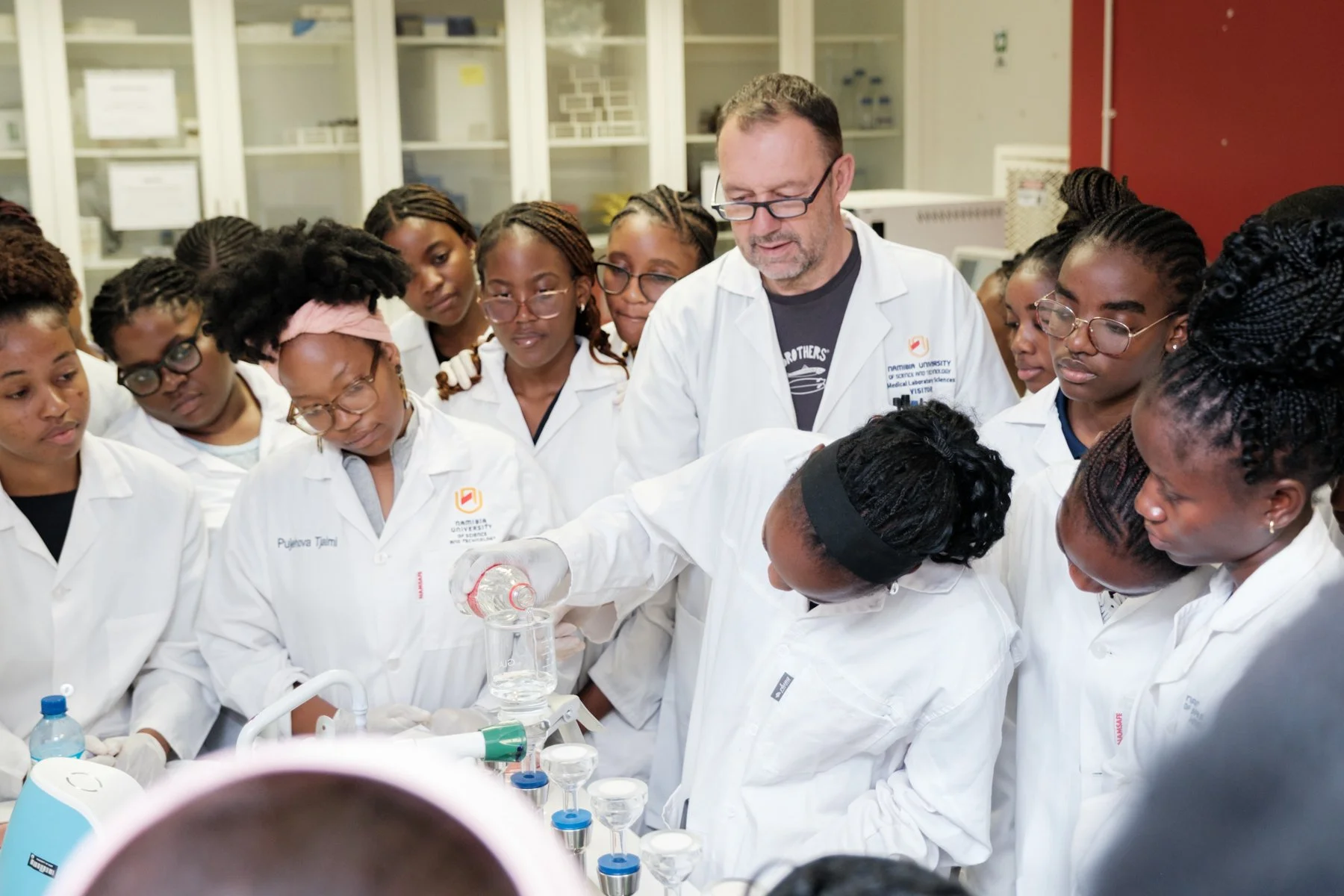 I have known many staff members involved in the Medical Laboratory Sciences Programme since my first assignment in 2016, or for several years. This long-standing familiarity makes collaboration easy, pleasant, and effective, contributing significantly to the success of my assignment. I am especially grateful to the staff who co-prepare and run the practical courses and organize field trips: Elmarie Eises, Shapopi Kamanja, and Ottilie Udjombala. Their support and expertise have always been invaluable.
