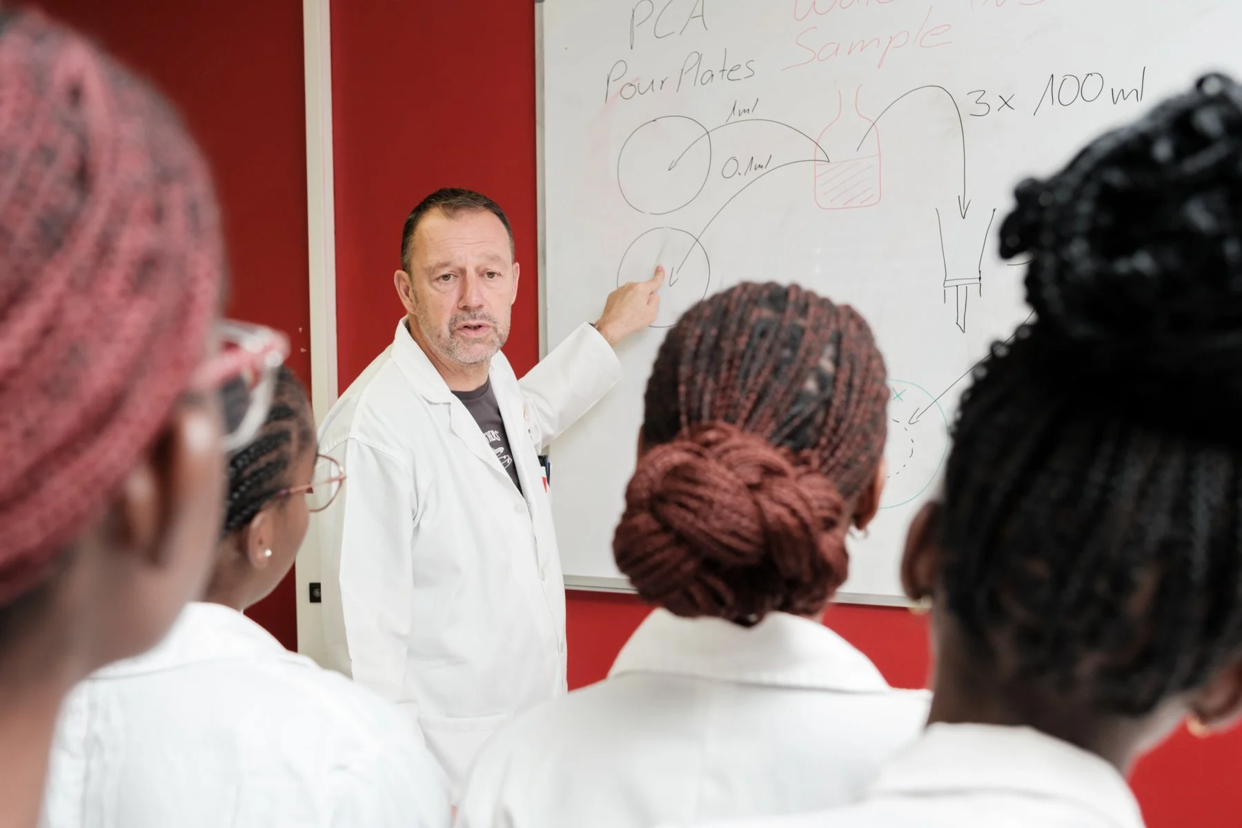 Since the number of third-year students in the Medical Laboratory Sciences programme is still increasing from year to year, we had 86 participants in our class. Fortunately, the staff is already prepared to manage the high numbers of students. They already developed a practical approach that allowed us to deliver a well-received practical course, also for this high number of students. The students were divided into two groups and each group was assigned to another laboratory. The two laboratories were connected by a corridor that allowed us supervisors to ‘oscillate’ between the two labs.